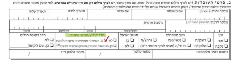 יש לסמן – כן הכנסותיי ממעסיק זה מועברות לקיבוץ.