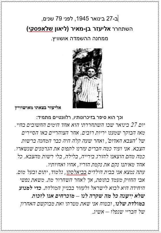 יום ותאריך יערה- האחות ראשה- מזכירה