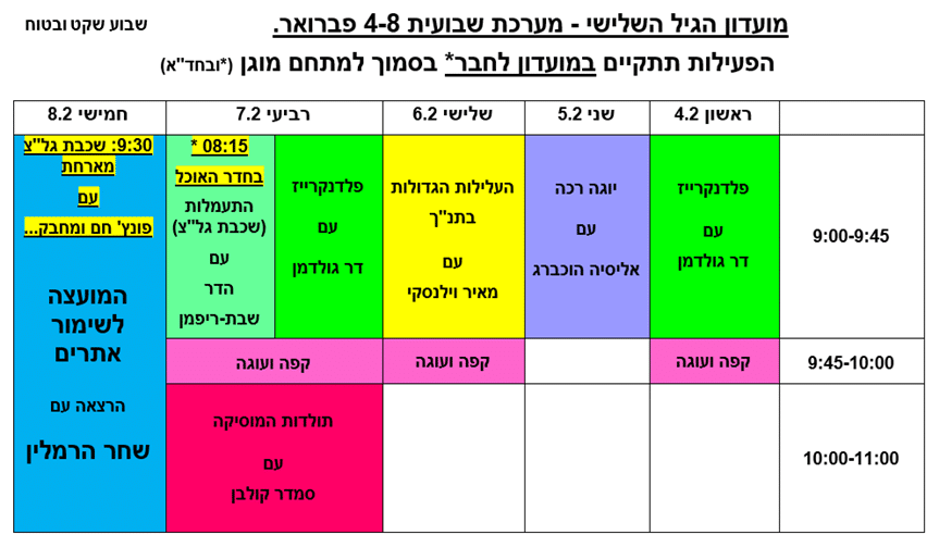 שם מתאים, שם קליט. שם שיגדיר נכון את הפעילויות השונות של שכבת גל"צ (גמלאים צעירים) ושכבת הוותיקים. שם שמחובר למורשת ולרוח הקיבוץ ועושה להן כבוד. שם מגניב, קל, בהיר, ברור, שם שכיף ללכת למקום שבו הוא נמצא… שם שיענה על כל הדרישות הללו – או לפחות על רובן – באופן הטוב ביותר.