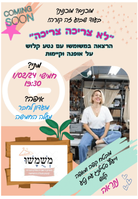 זו ההזדמנות של כל אחת ואחד מכם להיות רעיונאי/ת (קופירייטר) ולהציע את השם המתאים, הנכון, המתבקש של המועדון החדש. שם שיהפוך לחלק טבעי מרקמת החיים בקיבוץ. שם משלנו.