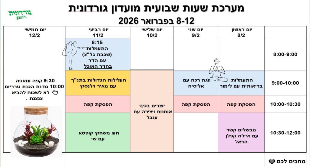 מוזמנים לפנות למירי פתייה מנהלת הגורדונית.