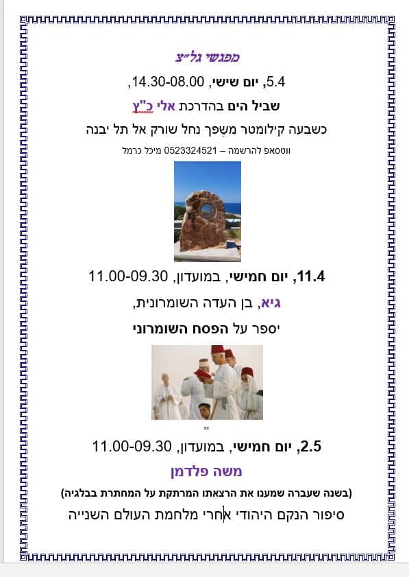 אנו שמחות לבשר על חידוש הטיולים לאורך חופי ארצנו בהדרכת אלי כ"ץ.