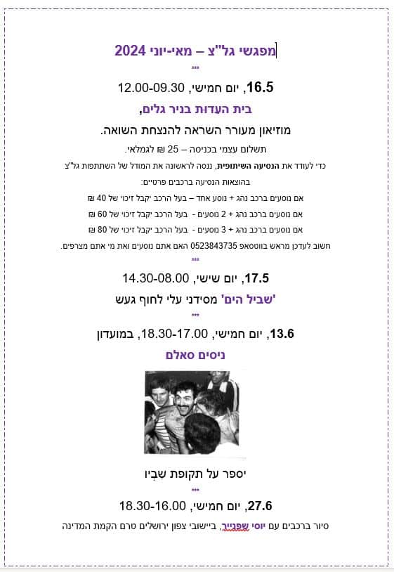 המעוניינים מוזמנים לפנות למרים קורן בטלפון – 052-3829969 או למייל markolitm@gmail.com