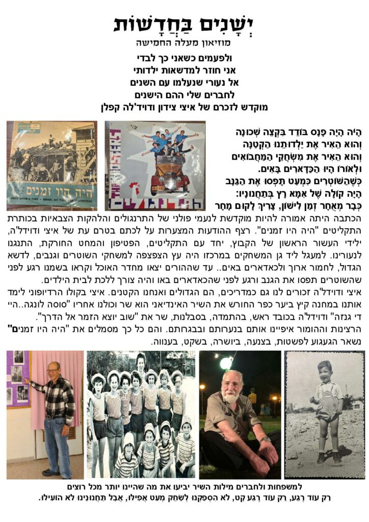 יום ראשון 12.5 בשעה 19:45 מול אבן היזכור