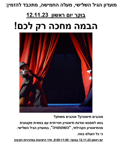 שימו לב . הסרט מיועד אך ורק לילדים שההורים שלהם נמצאים בשירה בציבור. וזאת על מנת שנוכל להכיל את כולם