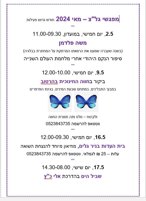 המעוניינים מוזמנים לפנות למרים קורן בטלפון – 052-3829969 או למייל markolitm@gmail.com