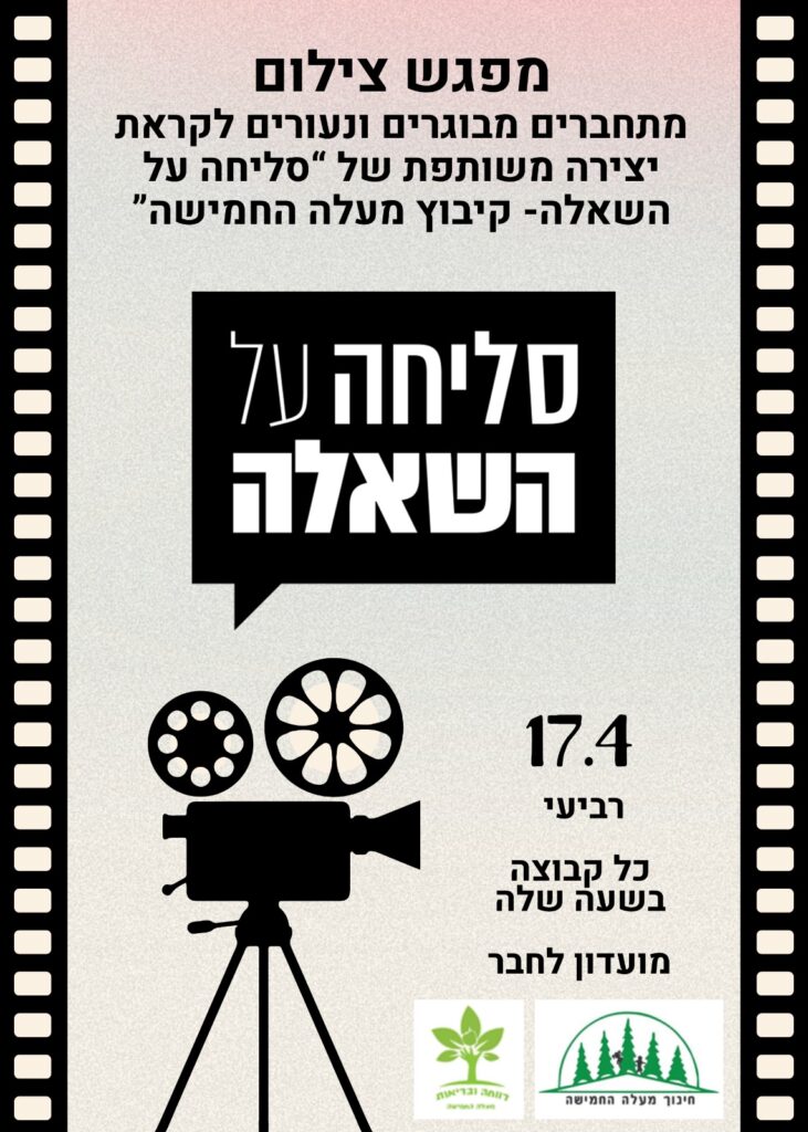 ניפגש במועדון לחבר מעלה החמישה, ביום שבת 4.5 בשעה 20:00