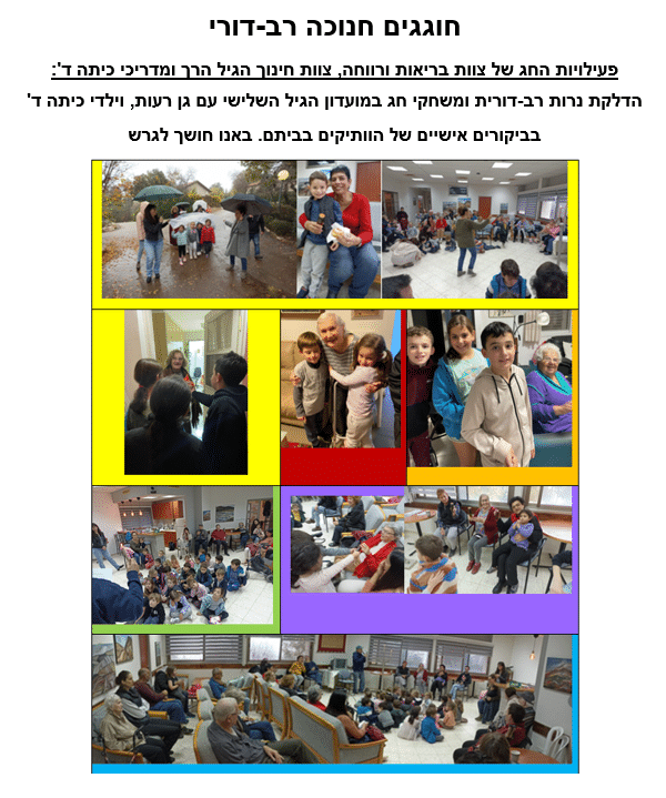 - העשרה של הצוותים ומתן השראה והדרכה לתכנים, חגים וחופשים.