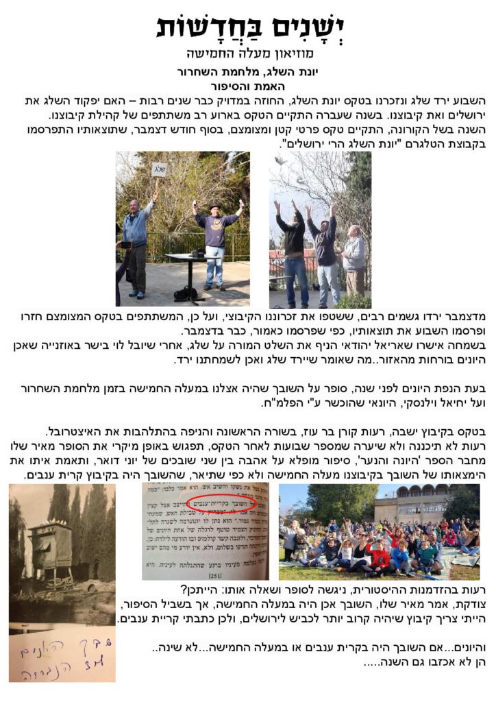 יחד עם זאת, נשמח אם מי מבינכם יקח על עצמו, הוספת מדורי תוכן חדשים. (כמו מדור הכרות עם אנשים חדשים בקיבוץ, או מדור "הכר את הכלב " או… טוב הבנתם)