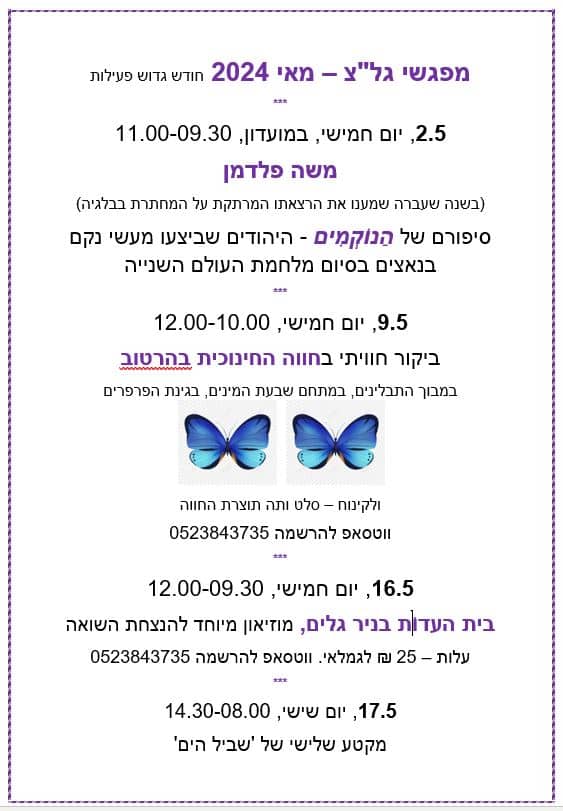 המעוניינים מוזמנים לפנות למרים קורן בטלפון – 052-3829969 או למייל markolitm@gmail.com