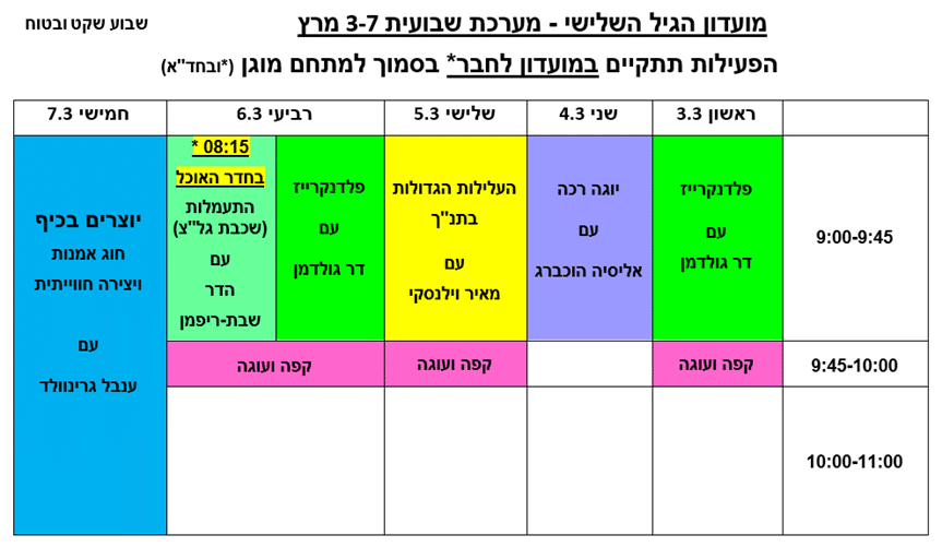 | יום ותאריך | יערה- האחות | ראשה- מזכירה |